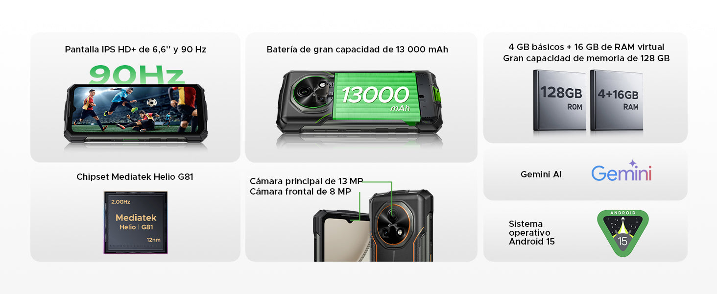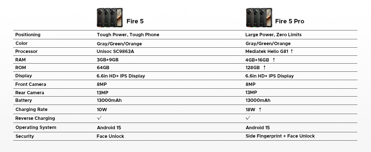 DOOGEE Fire 5 Pro 4G Móvil Resistente 13000mAh 18W Android 15 Móvil Irrompible