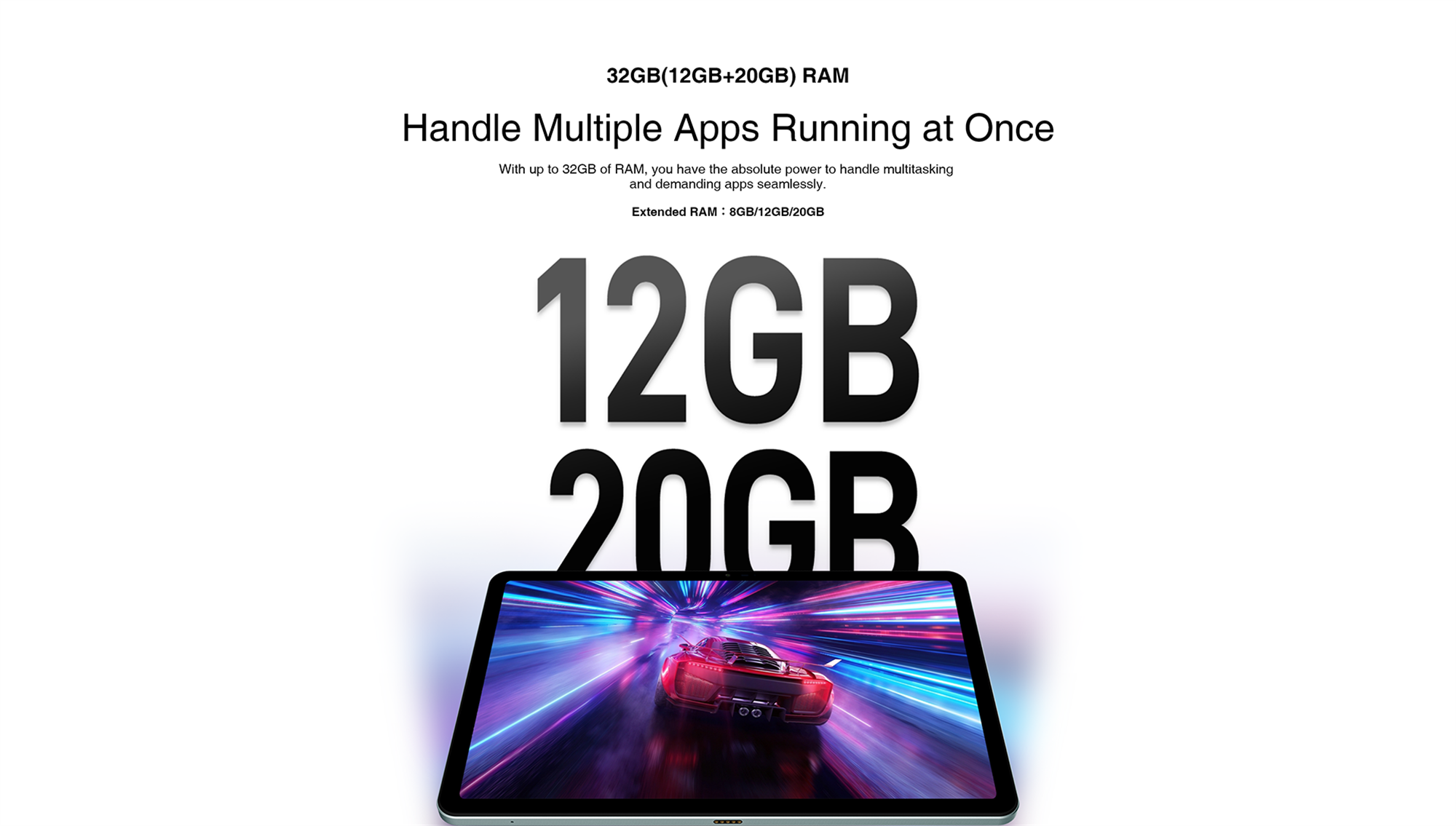 · 32 GB RAM (12 GB+up to 20 GB extended RAM) / DDR4X