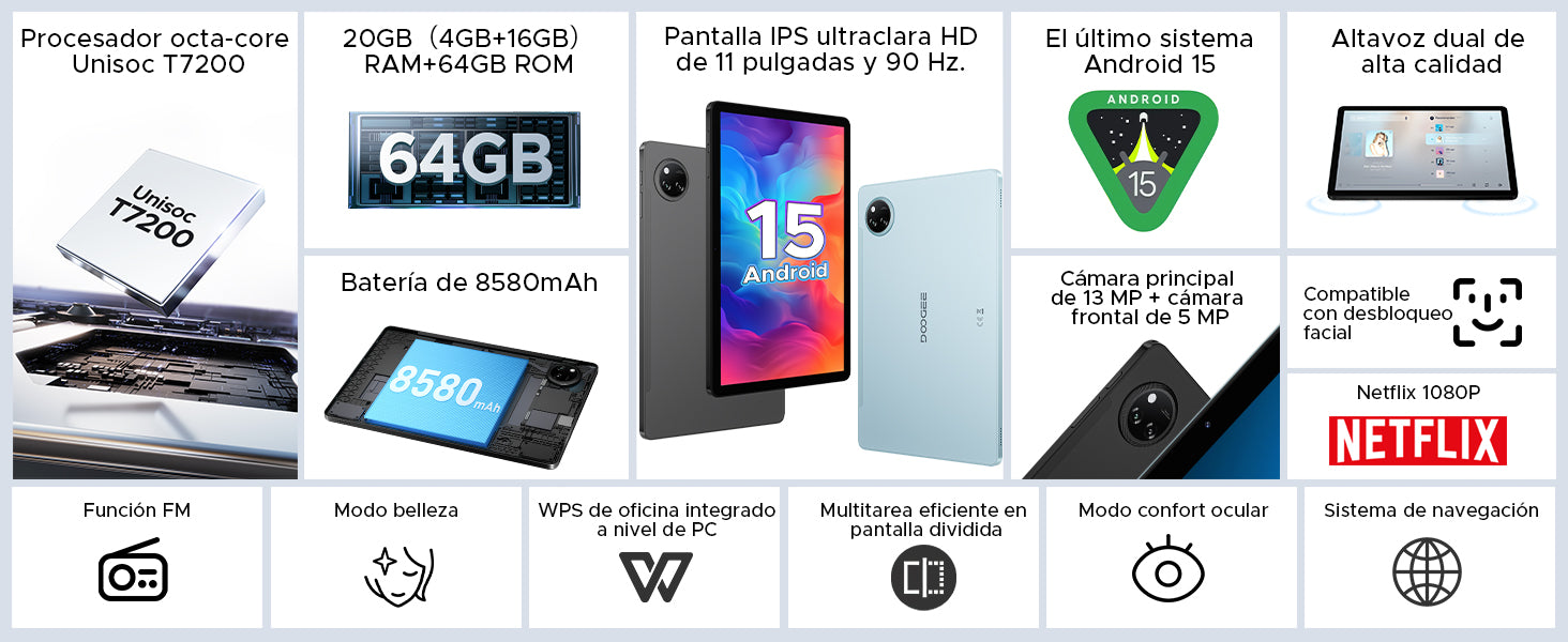 DOOGEE Tab A9+ Tableta Unisoc T7200 de 20 GB + 64 GB, 11 pulgadas, 8580 mAh, Android 15