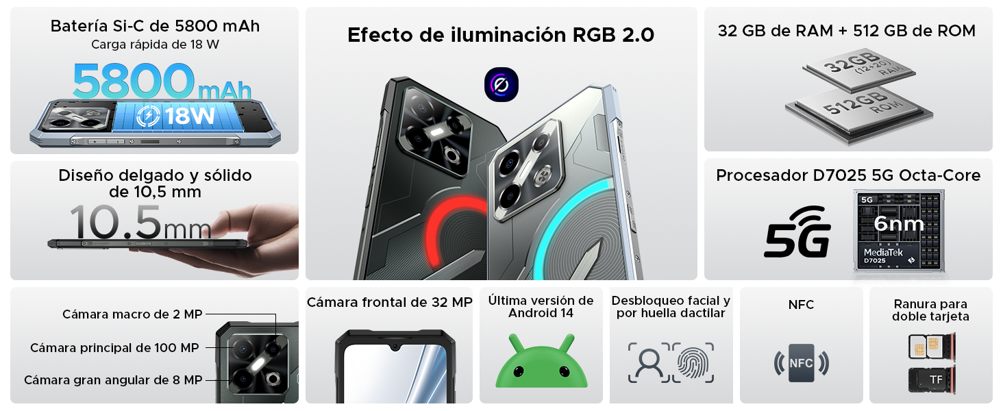 DOOGEE Blade GT Pro Smartphone robusto 5G 32 GB + 512 GB Teléfono indestructible
