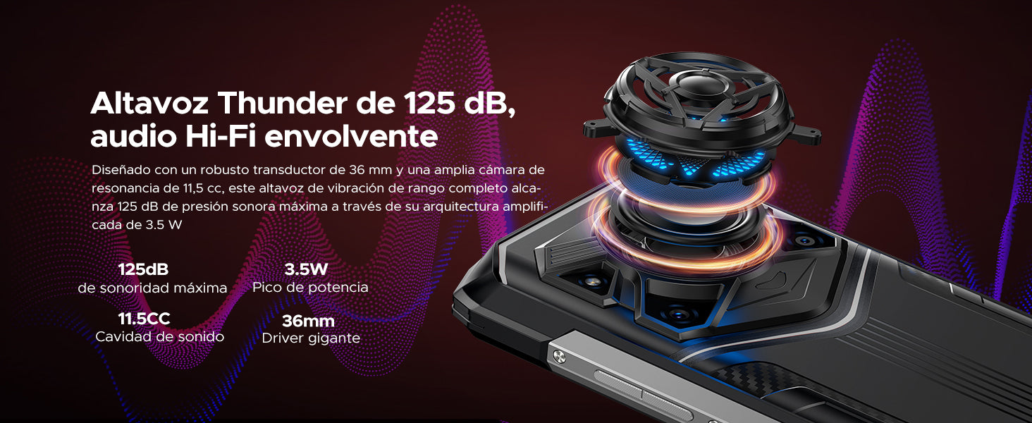 · 125 dB / Altavoz de gran amplitud de 36 mm / 3,5 W de alta potencia