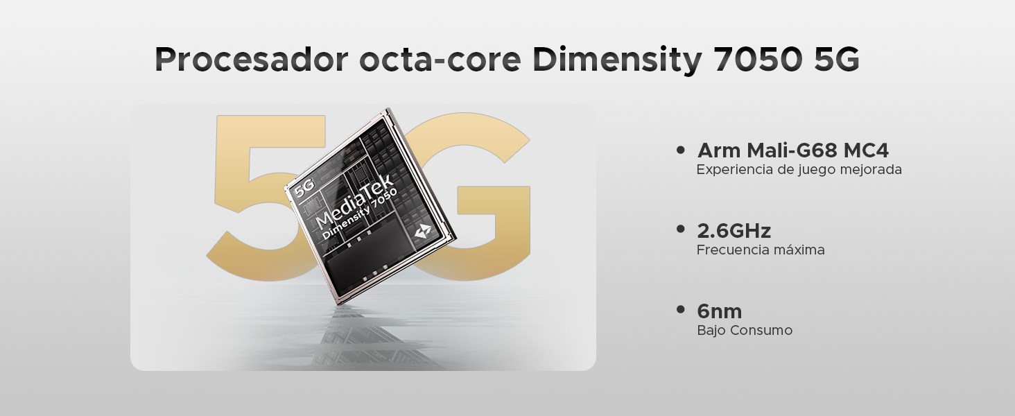 · Procesador Octa Core 7050 de 2,6 GHz y 6 nm