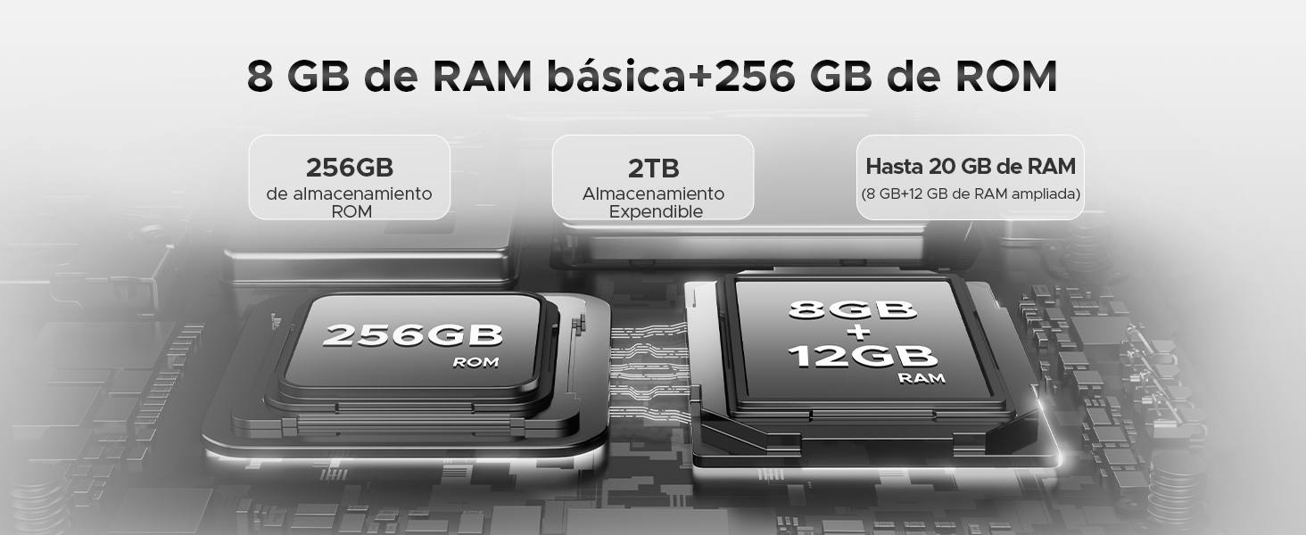 · 20 GB de RAM (8 GB + hasta 12 GB de RAM adicional)