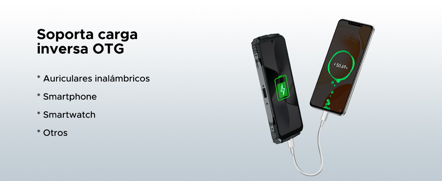 El moviles resistente 2024 con una 10800mAh gran batería puede satisfacer tus diferentes necesidades durante todo el día. El móvil libres S118 admite carga rápida C de 33 W y, con una carga completa, suele durar entre 3 y 5 días, con hasta 40 días en espera. Además DOOGEE S118 movil todoterreno tiene función OTG, que puede cargar otros aparatos eléctricos en caso de urgencia, por lo que es un dispositivo bueno y fiable para camping y senderismo.