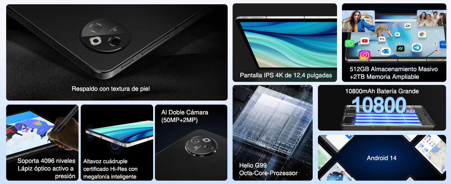 Doogee T30 Max Tablet PC 12.4" Pantalla IPS 4K 20/512GB Android 14