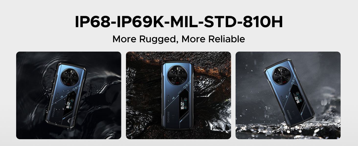 El móvil resistente 5G DOOGEE V40 PRO ofrece una impresionante pantalla ultragrande de 2,4 K de 6,78 pulgadas, combinada con una alta frecuencia de actualización de 120 Hz y controles táctiles ultrarreceptivos. Los teléfonos móviles sin tarjeta SIM también cuentan con una pantalla táctil secundaria de 1,47 pulgadas en la parte posterior, que brinda una variedad de funciones prácticas, que incluyen notificaciones y alertas, responder llamadas, controlar la reproducción de música, ver datos de actividad física, acceder a actualizaciones meteorológicas y ayudar con selfies. Además, puede personalizar el fondo en cualquier momento.