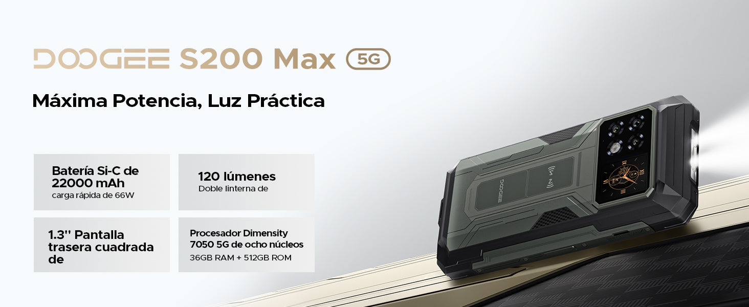 DOOGEE S200 Max Teléfono robusto Dimensity 7050 de 36 GB + 512 GB, 22000 mAh, Android 15, 5G